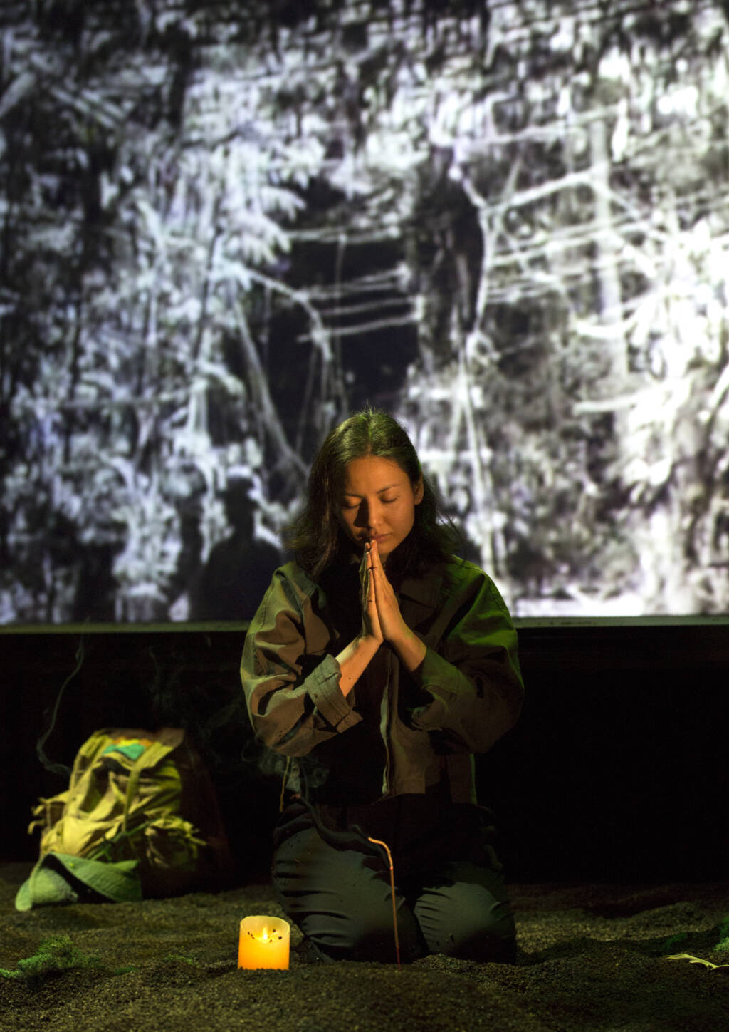 Porté par la comédienne Angélica-Kiyomi Tisseyre Sékiné, ce récit théâtral entrelace texte, performance, vidéo, images d’archives se mêlant avec la vie de Tran To Nga. Il raconte la vitalité de corps blessés et contaminés par les tragédies de l’Histoire, toujours en lutte et en résilience.