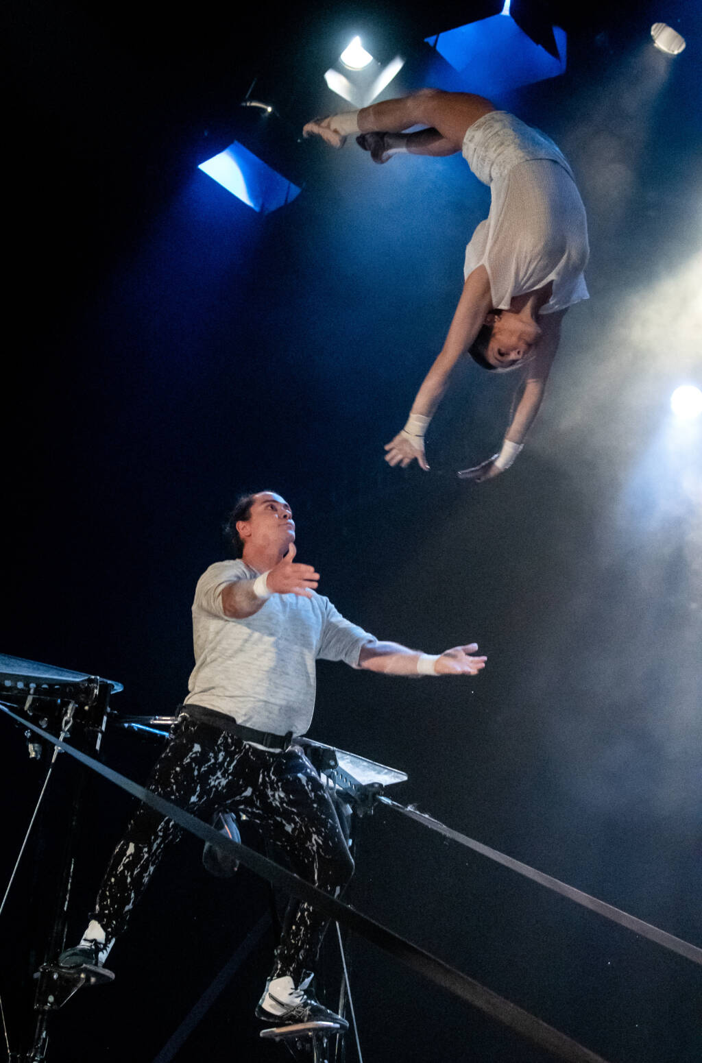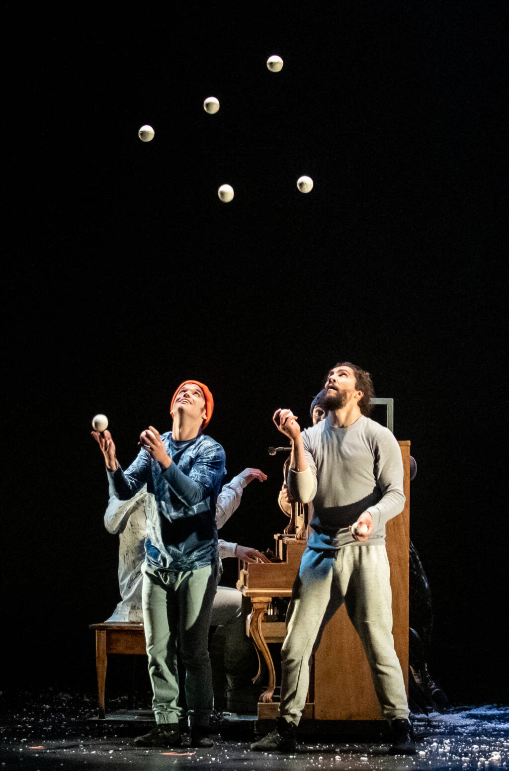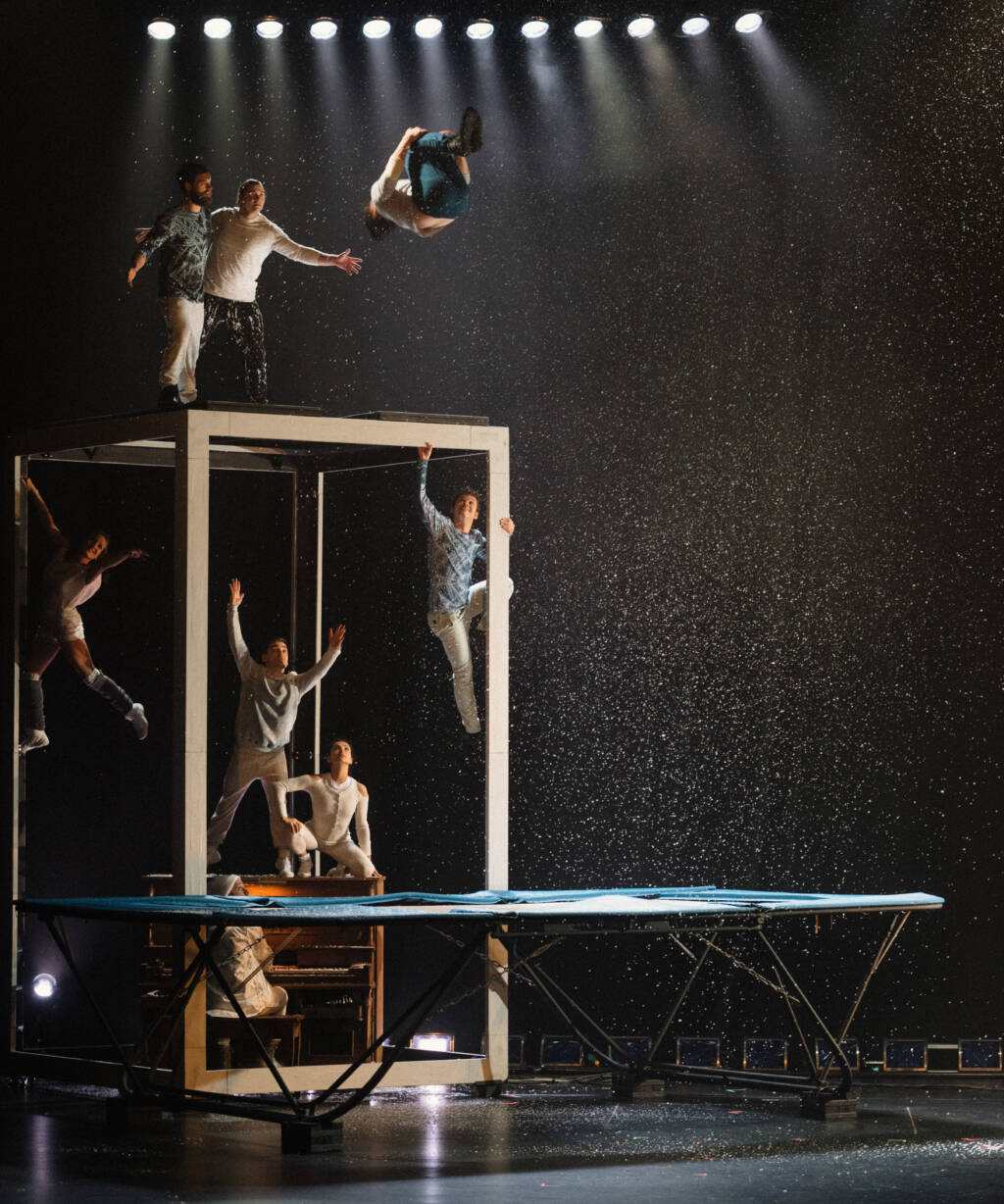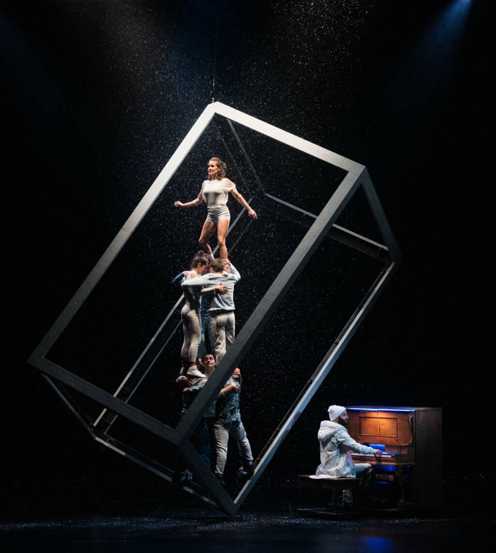 Artistes géniaux d’envergure internationale ayant collaboré avec le Cirque du Soleil ou le Cirque Eloize, les huit acrobates exceptionnels font fondre cette glace qui nous saisit parfois et nous empêche d’avancer. Acrobaties de haut-vol, piano, guitare et banjo live, poésie authentique et enivrante sont les ingrédients de ce spectacle en mode tempête blanche chaleureuse. Impossible de résister au passage de cet ouragan sensationnel !